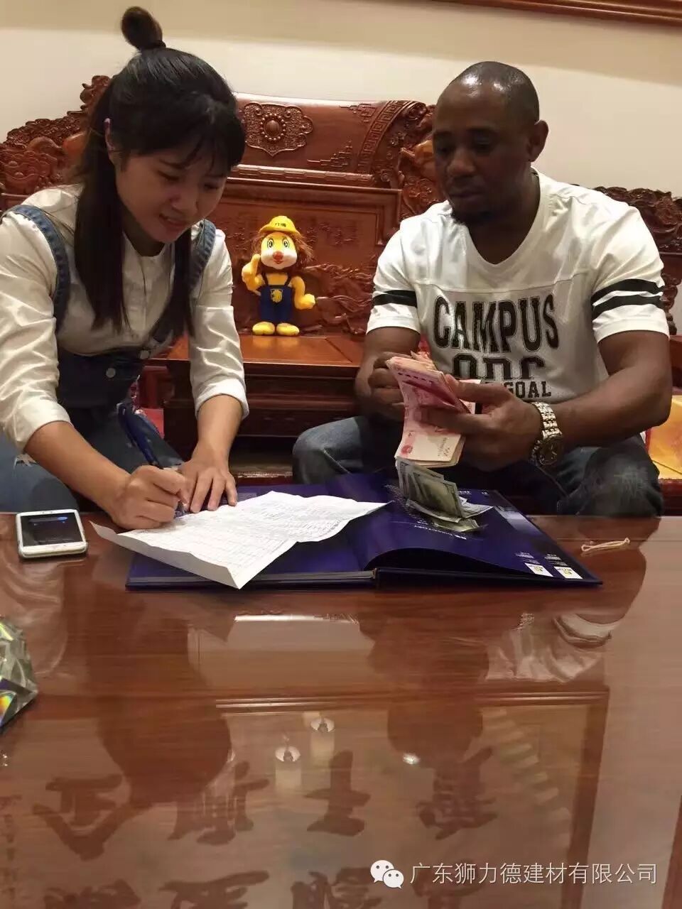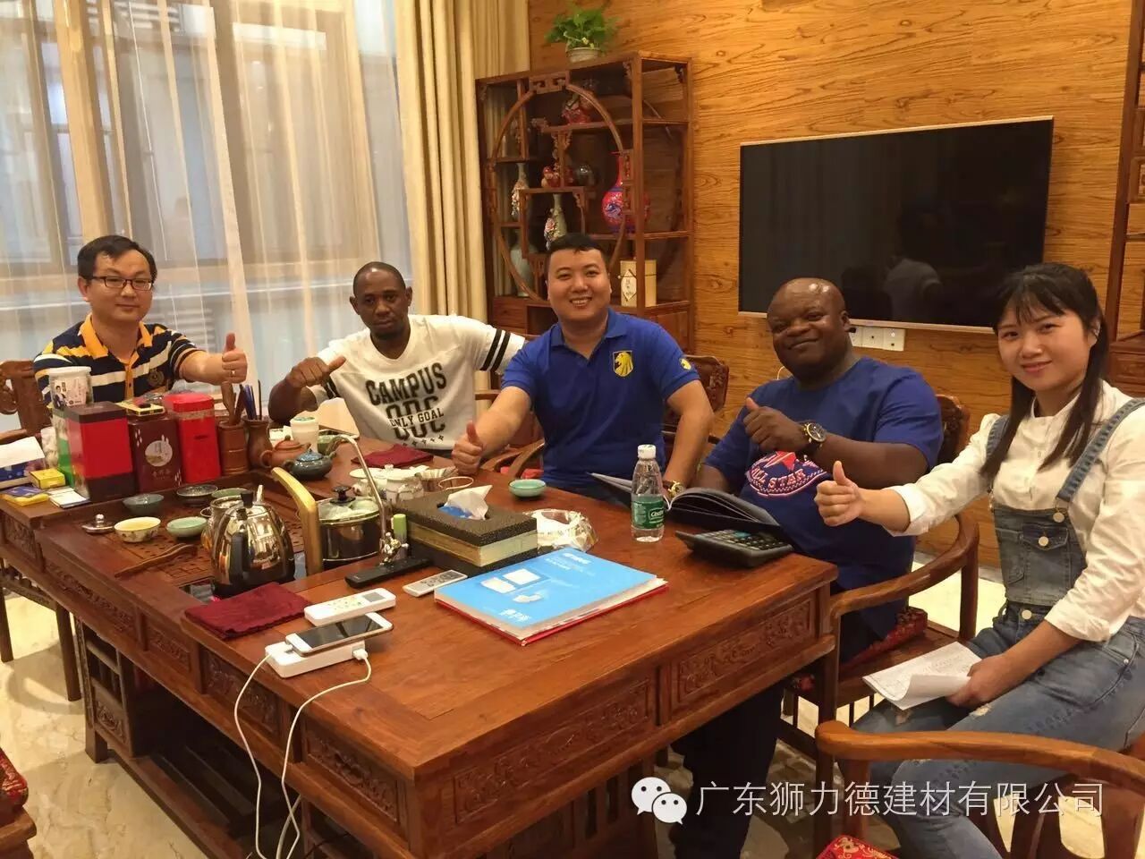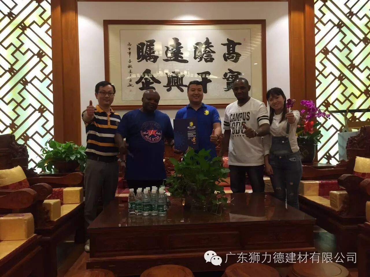 Vino在南非从事多年的装饰、装修、建材生意,他公司占据南非最大城市约翰内斯堡高端装修市场份额的60%以上,大部分服务的客户都是政府要员、社会名流,正是这部分客户对于装修材料有着苛刻的要求,特别是污染方面更是一票否决。此次Vino来中国就是想寻找一种价格适中、施工简单、绿色环保、零污染的材料。在狮力德展厅,了解完狮力德所有的产品后,知道贝壳粉是一种完全无污染、零添加的无机材料后,毫不犹豫现场冲调了一杯贝壳粉“特饮”,一饮而尽,竖起了大拇指。随后,Vino表示狮力德的产品就是他所寻找的,所以当天Vino就与狮力德公司签订了订货协议,支付了定金。