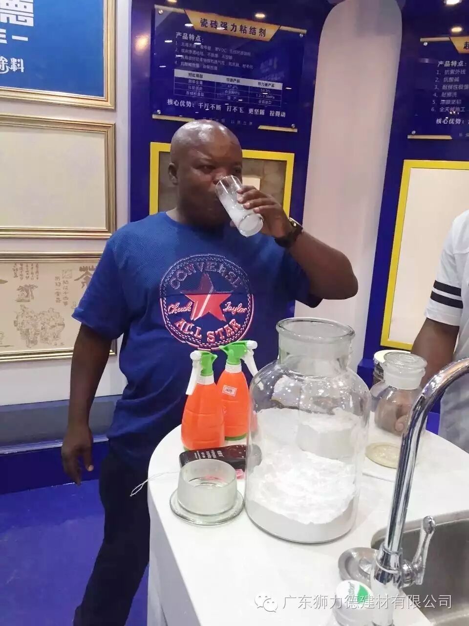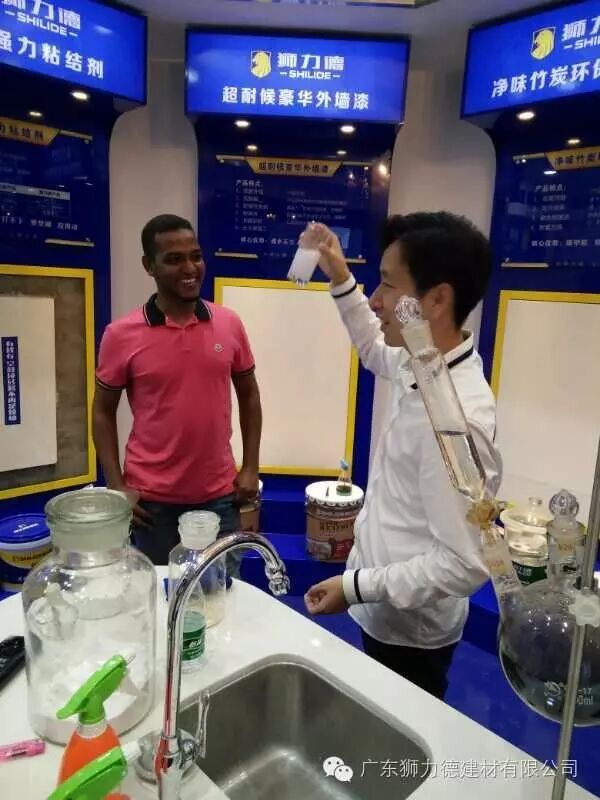 来自苏丹的ohlmer是个中国通,在中国一直都是做建材方面的国际贸易工作,对于国内建材行业行情都比较的了解。在狮力德展厅了解完产品后,对于可以喝的贝壳粉同样惊叹不已。Ohlmer先生说,之前佛山的建材外贸一直都是低端产品以量取胜,以低价取胜,利润低甚至是零利润,这两年以来各大国际市场对于中国建材的反倾销愈演愈烈,凭借他对于国际贸易建材市场的了解,接下来只能依靠创新驱动、环保驱动才能赢得国际市场更大的市场份额。